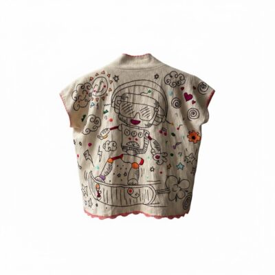 Kimono din cânepă și bumbac, brodat manual Powerpuff Girls