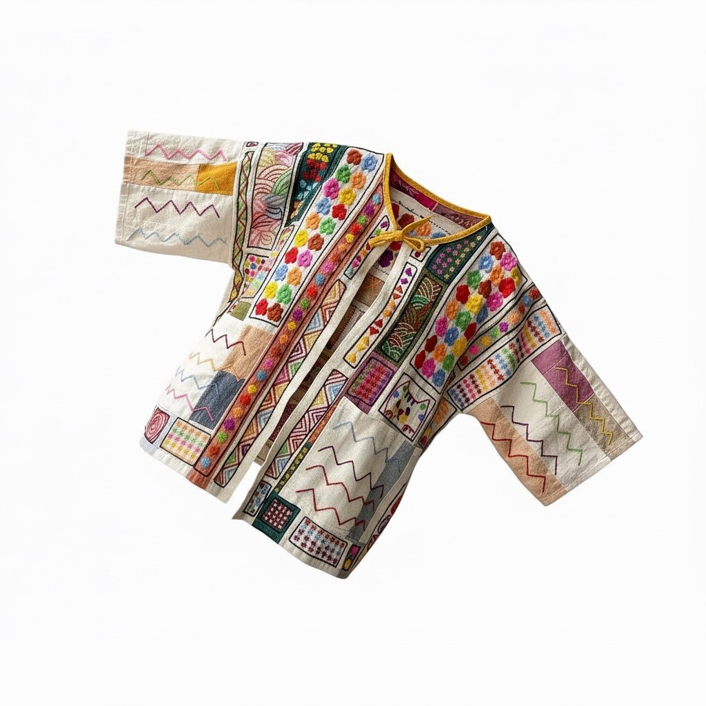Cămașă brodată manual din bumbac & cânepă – One Size