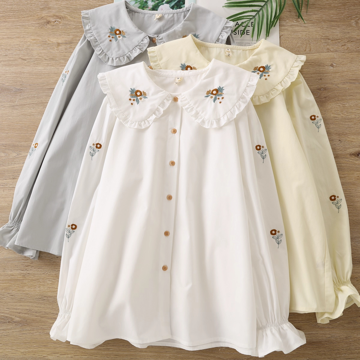 Cămașă Lejeră cu Guler Rotiță & Broderie – Stil Vintage Boho, One Size