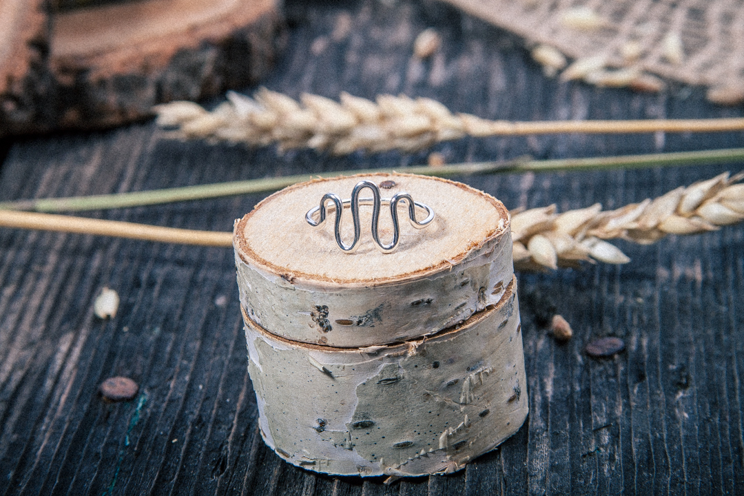 Inel minimalist, cu design geometric, lucrat manual din argint radiat.