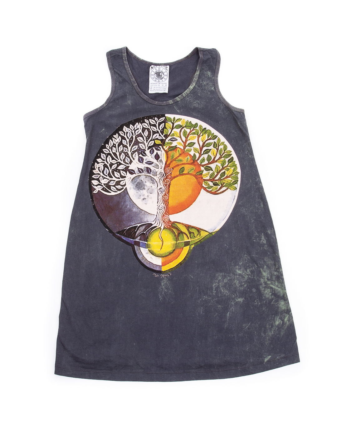 Rochie Balance Dream este dintr-un bumbac exceptional, fara maneca si finisaje moderne, colorat printr-o tehnica ce permite efectul de tocire, de prespalare (stonewashed), cu un imprimeu personalizat prin decolorare cu clor. Poate fi integrat in orice tinuta originala, in contexte casual si cu siguranta te va face sa te simti perfect!