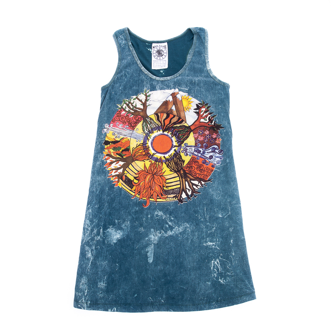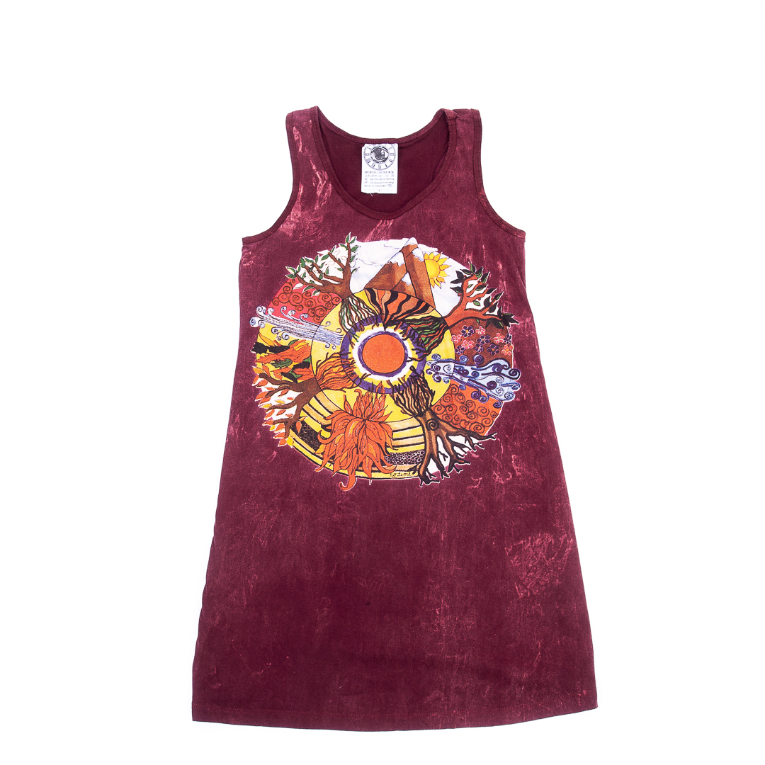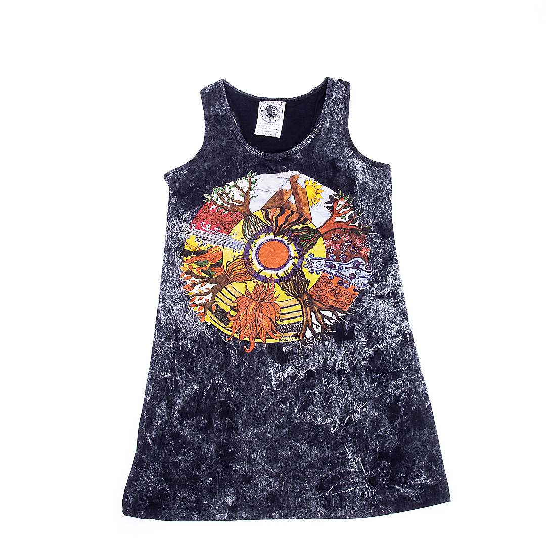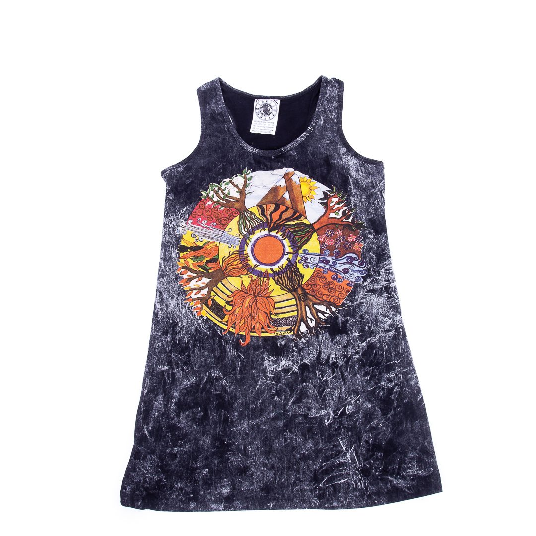 Rochie Maiou Anotimpuri- Rochia este dintr-un bumbac exceptional, fara maneca si finisaje moderne, cu un imprimeu complex aproape imperceptibil pe toata suprafata tricoului si un imprimeu mai mare colorat in fata reprezentand Anotimpurile intr-o lume mult mai linistita si plina de experiente noi . Poate fi purtat in diferite contexte si iti va aduce un vibe pozitiv in orice tinuta!