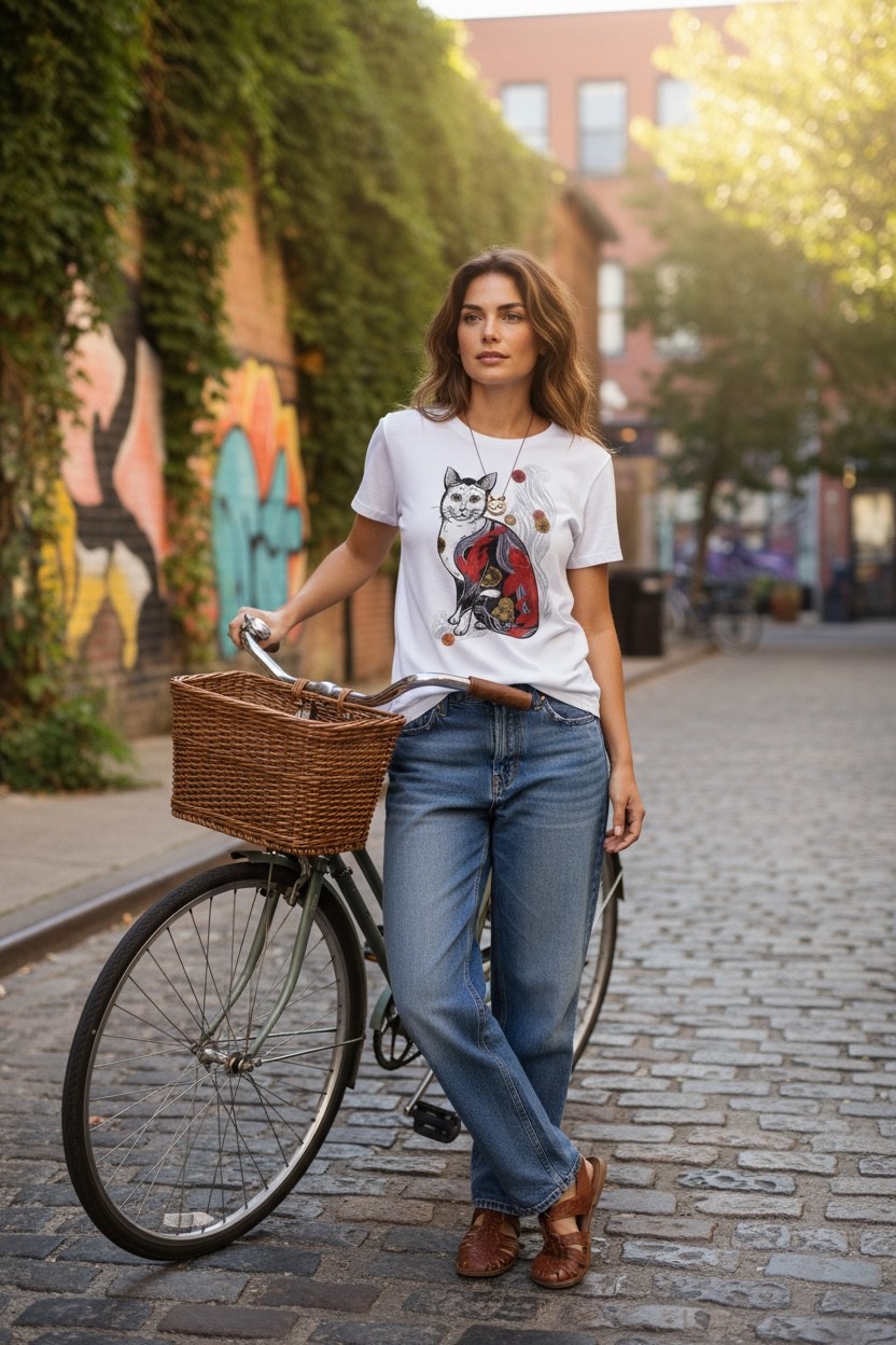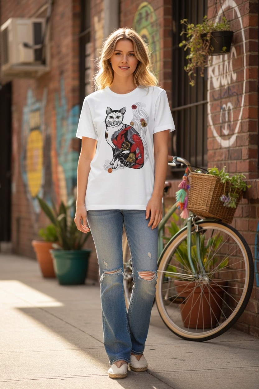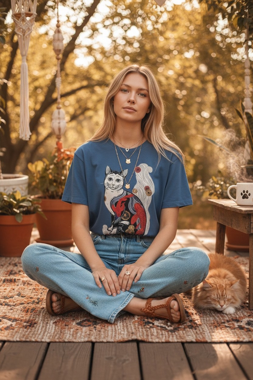 Tricoul „Mystic Cat” este o combinație între eleganță, mister și simbolism. Designul artistic al pisicii, integrat cu elemente fluide și contraste inspirate din yin-yang, transmite echilibru, intuiție și libertate.