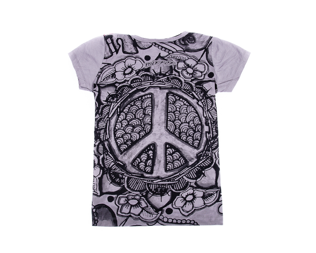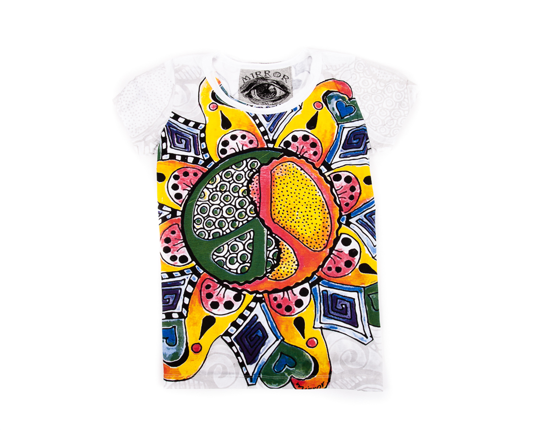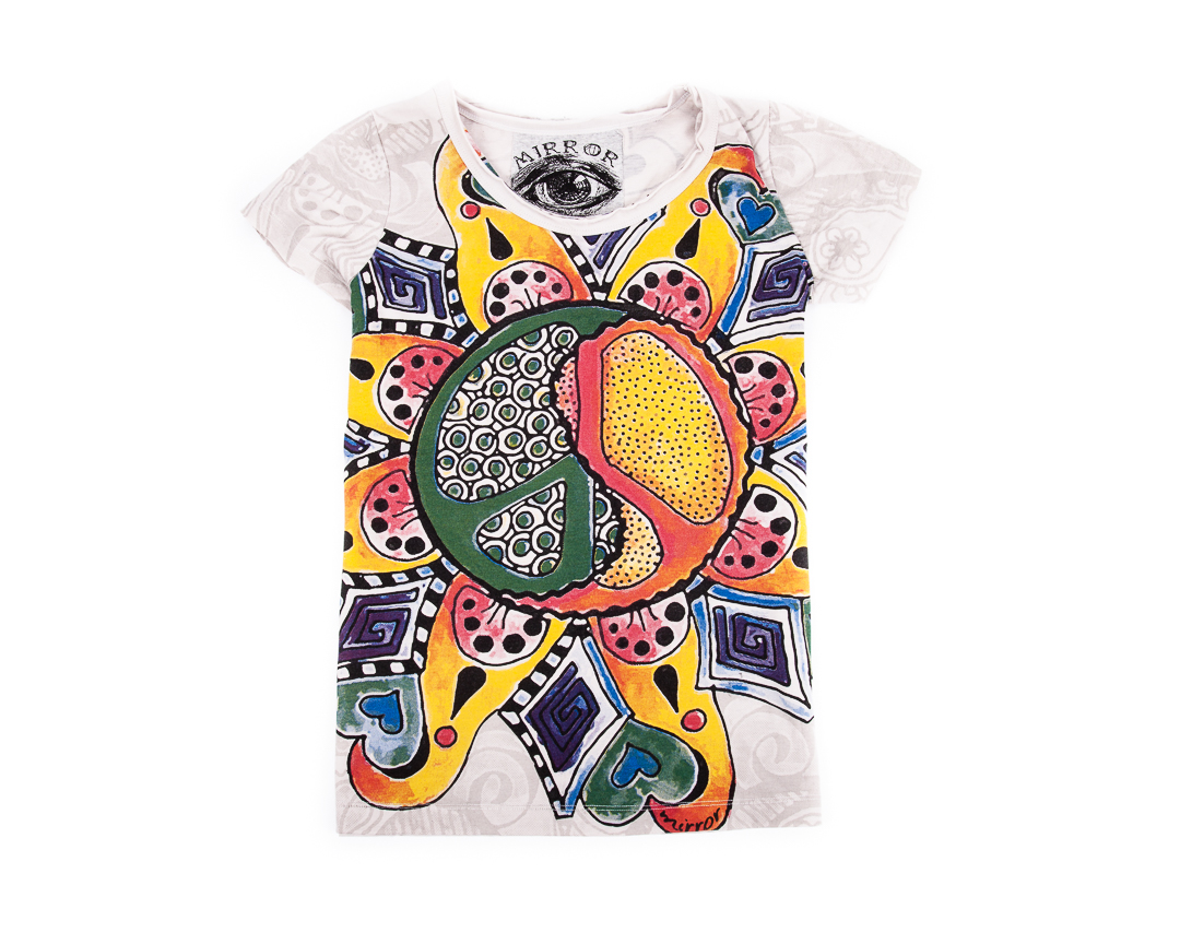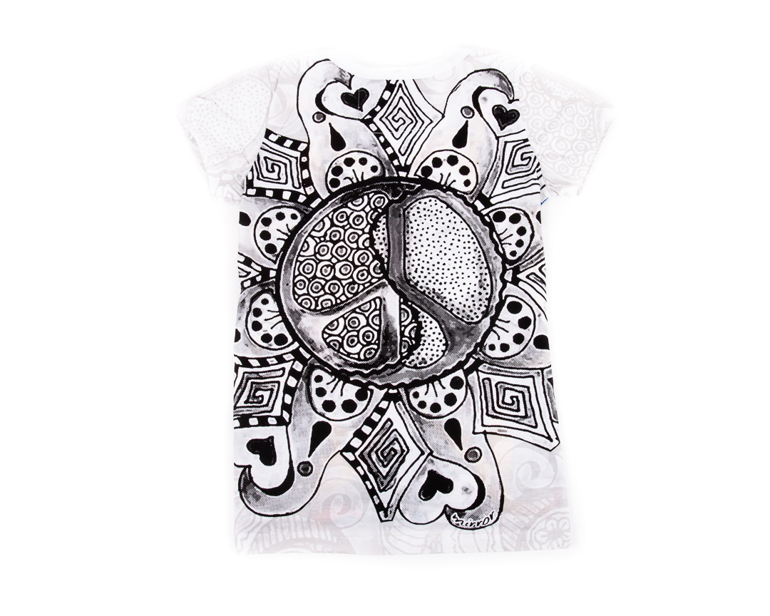 Tricou Inner Love – Tricoul este dintr-un bumbac exceptional, cu maneca scurta si finisaje moderne, cu un imprimeu complex aproape imperceptibil pe toata suprafata tricoului si un imprimeu mai mare colorat in fata reprezentand simbolul Pacii stilizat. Pe partea din spate, tricoul are acelasi imprimeu pe negru, efectul dorit si obtinut fiind de imprimeu oglinda. Poate fi purtat in diferite contexte si iti va aduce un vibe pozitiv in orice tinuta!