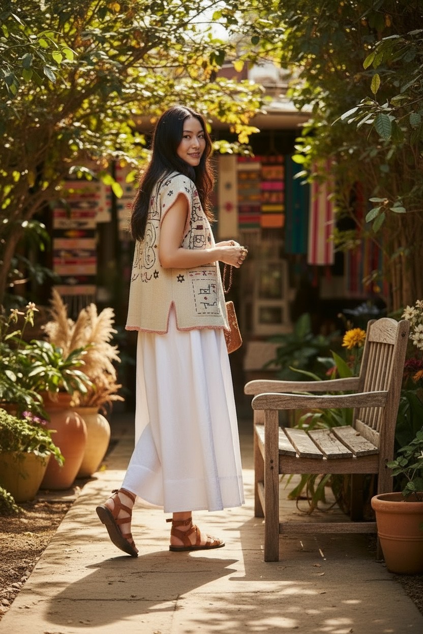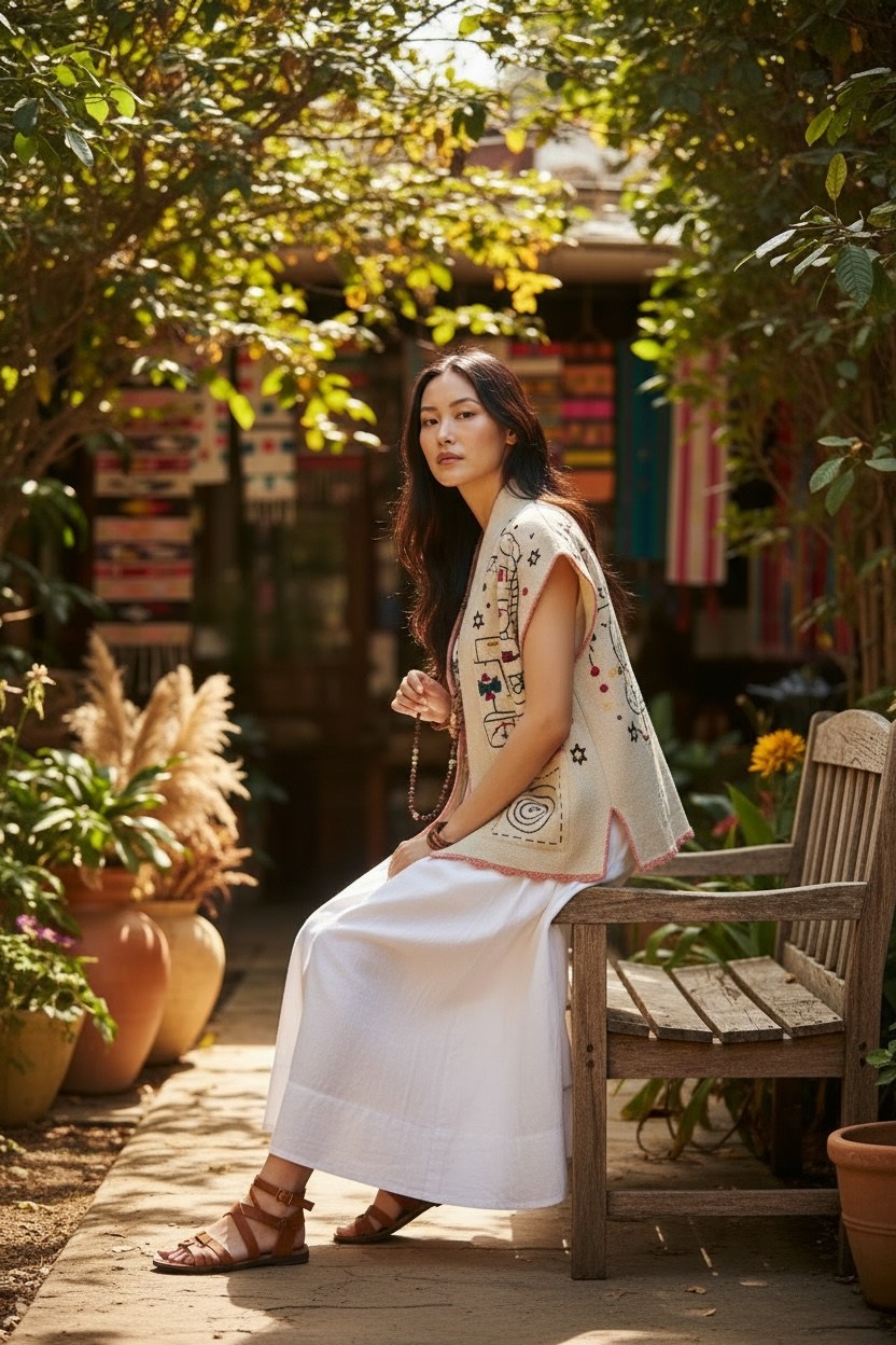 Textura ușor brută a cânepii se combină perfect cu delicatețea broderiei, iar croiala lejeră o face ușor de purtat peste orice – tricou simplu, rochie sau chiar direct pe piele.